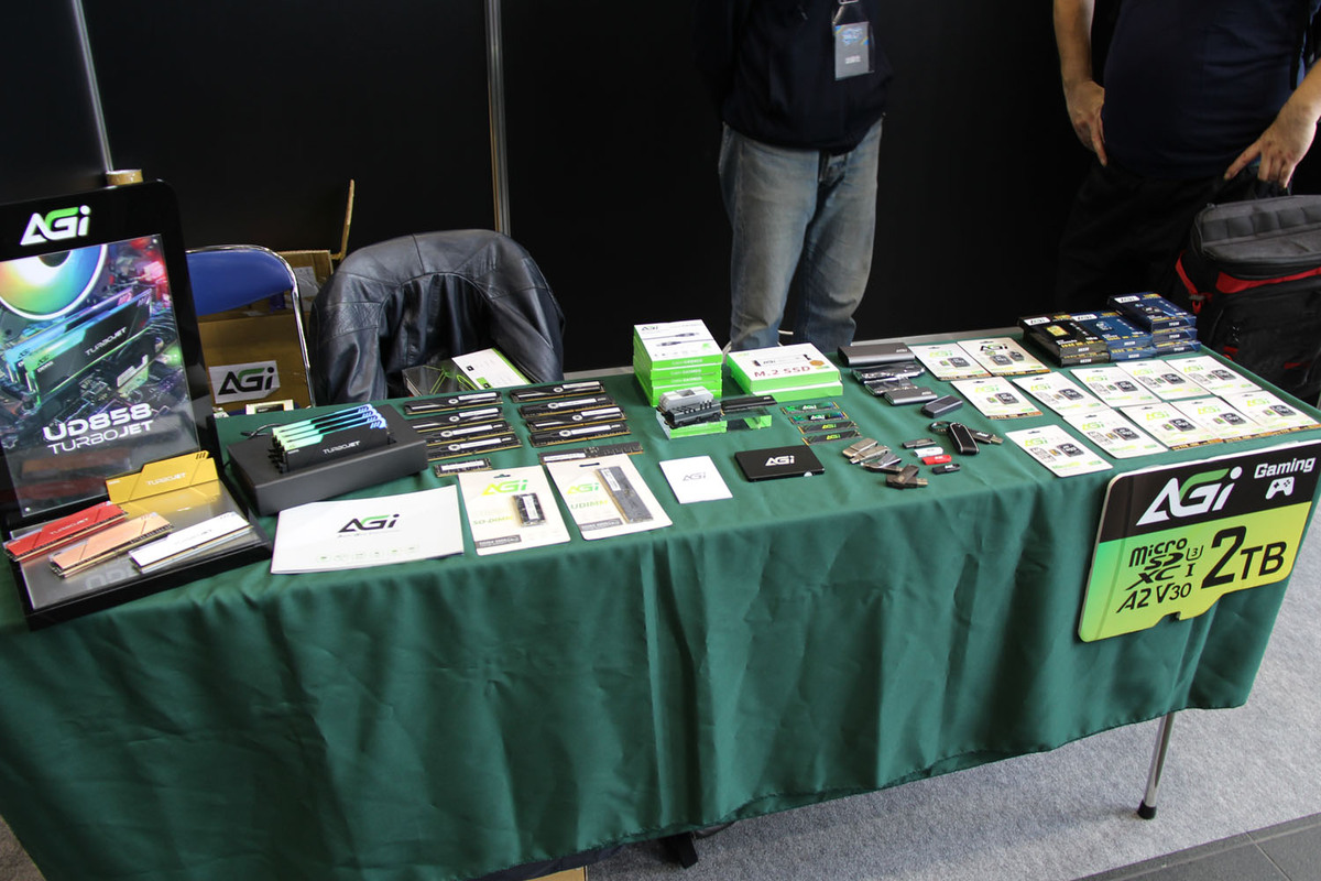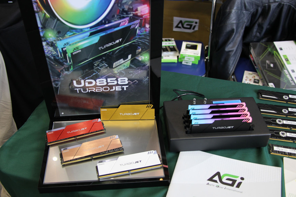 SDカード、USBメモリー、SSD、DRAMを取り扱う台湾のメモリーメーカー。販売中の製品を展示中。ゲーマー向けのハイスピードメモリー「TURBO JET」シリーズは、他社にはあまりない色のヒートシンクを装備しているので、派手好きは要注目だ