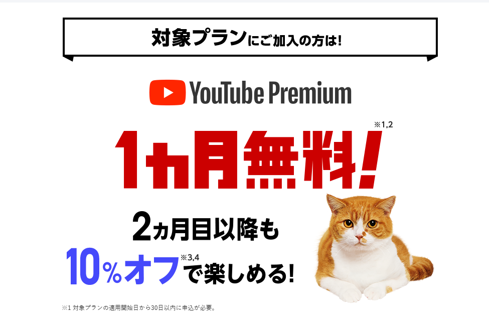 そのほか、対象プランの適用から30日以内かつ、YouTube PremiumやYouTube Music Premiumの初めての申し込み時は初月無料で利用できる。