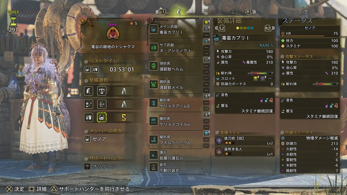 使い慣れた武器種があるならそれを使えばいいが、筆者のようにない場合は何がいいのか探るところからスタート。とりあえず武器ごとに1戦ずつやってみて、一番可能性を感じたのは「狩猟笛」だった。ほぼ使用経験ゼロなんだが!