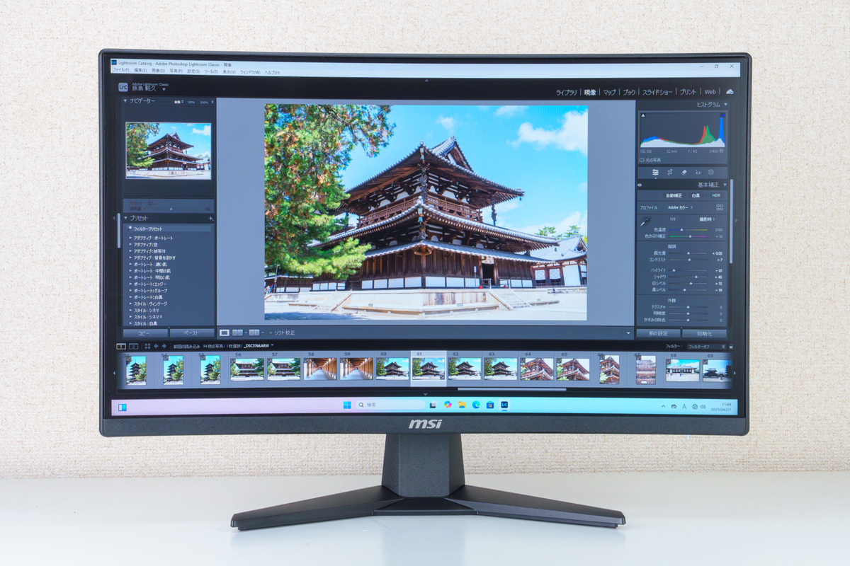「Adobe Lightroom Classic CC」で写真現像も行なってみた。解像度はフルHDのため、作業領域的には狭くなってしまうが、発色はいいので調整はしやすい。また、スクロールが滑らかなので意外と画面が狭いという感覚はなく作業できた。ゲームだけでなく、プライベートな作業でも活用できるはずだ。