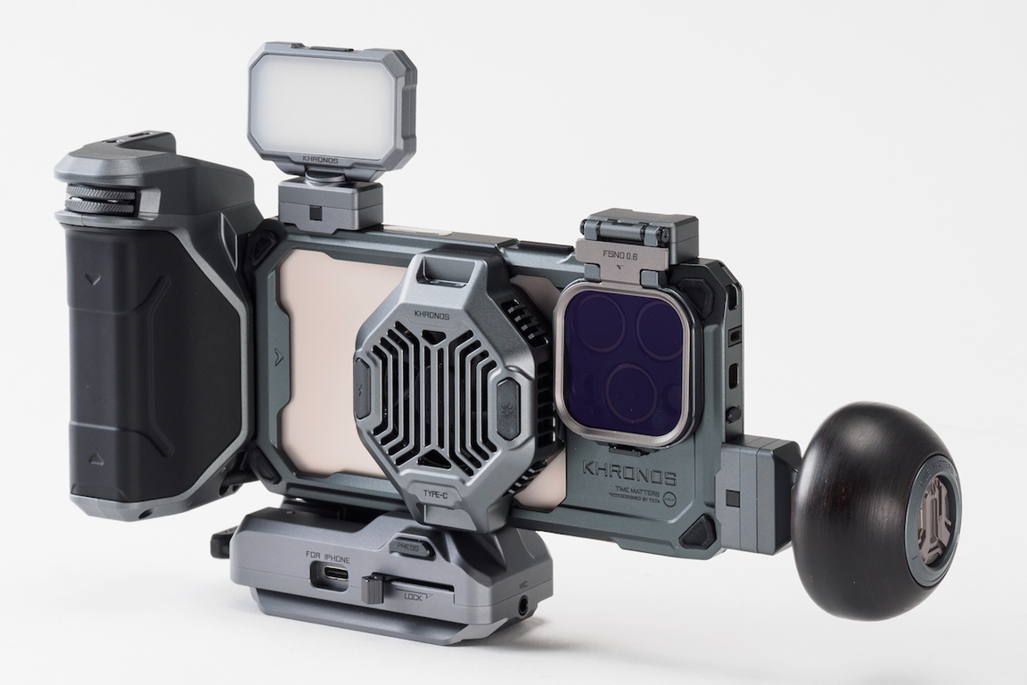iPhone 16 ProまたはiPhone 16 Pro Max用に作られており、カメラの安定性を高めるハンドルや、USBハブ、長時間撮影に有効な冷却機能など、プロフェッショナルな映像制作に必要な各種アクセサリーを搭載し、iPhoneでの映像制作の可能性を大きく広げられます。