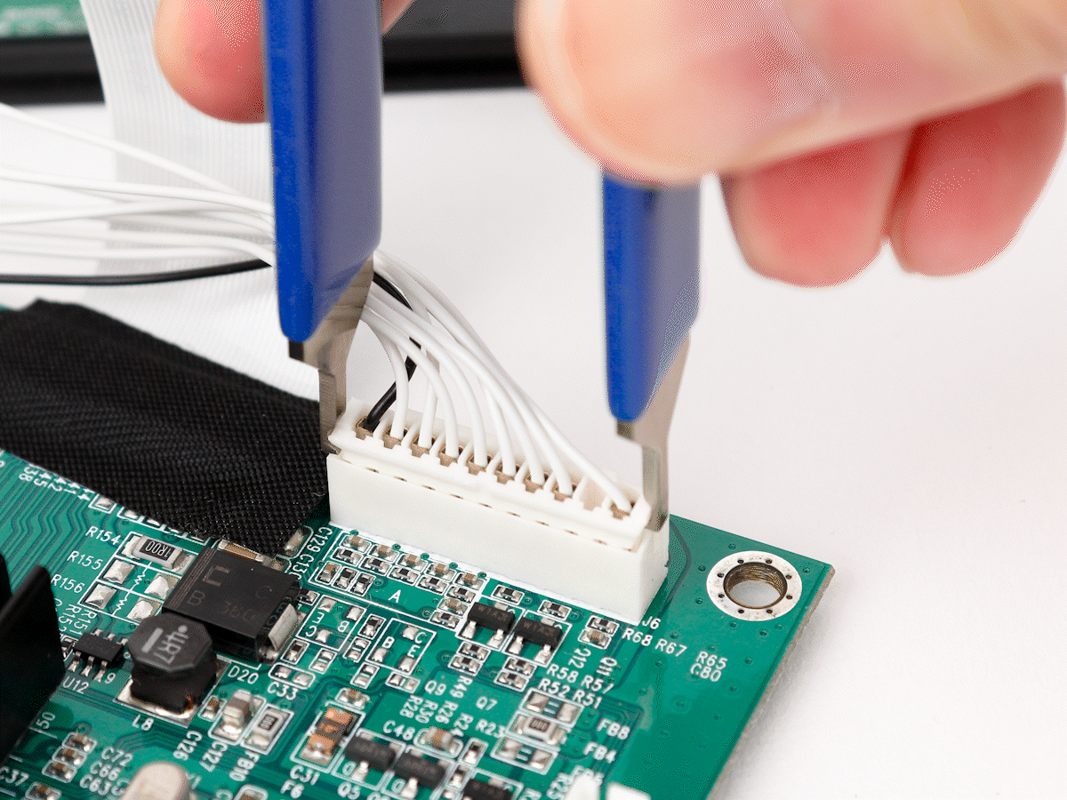 実際に、コネクターを引き抜いてみましょう。小型の液晶ディスプレー内部にちょうどいいコネクターがあったので、これで試してみます。
