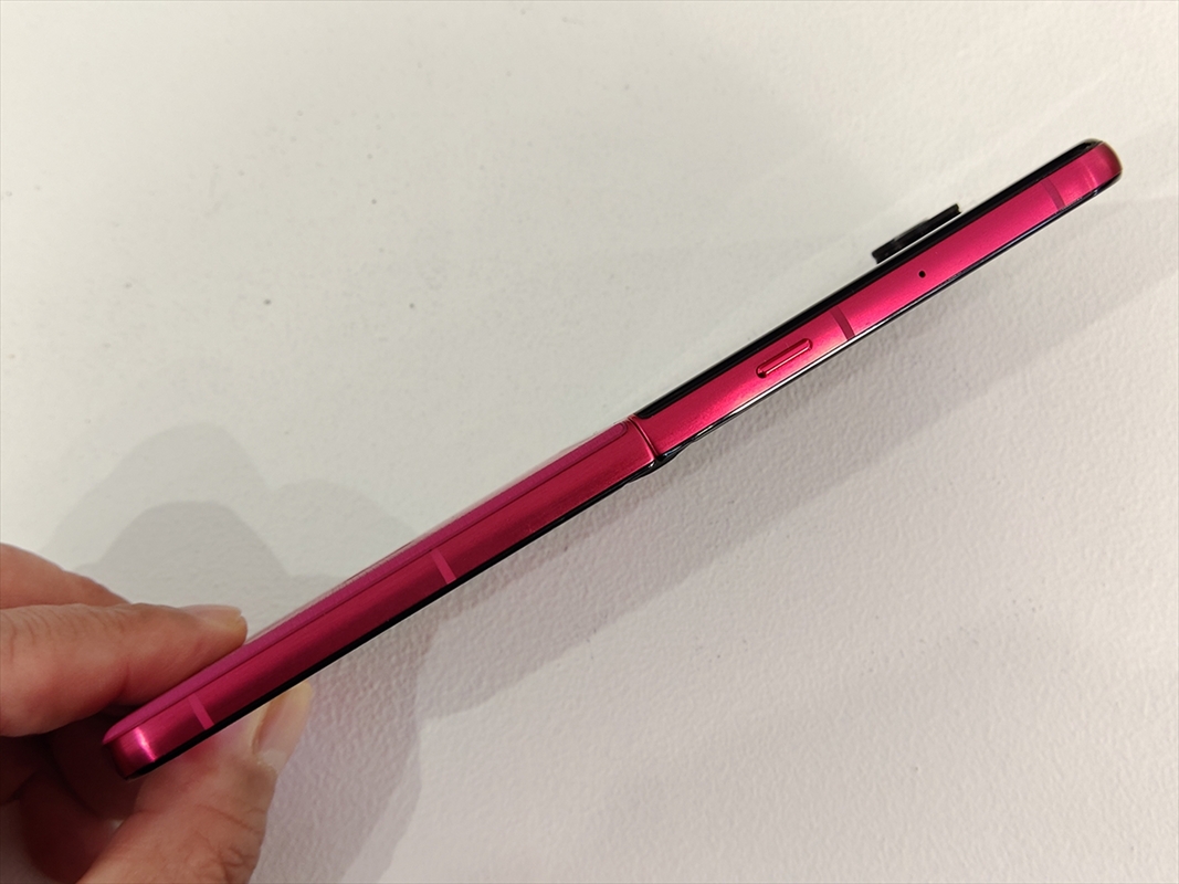 メインディスプレーは7型で、これまでのモデルの6.9型より大きくなった。ただし、本体サイズはほぼ変わっていないことから、ベゼル部分を薄くしてディスプレーを大きくしたようだ。リフレッシュレートは最大165Hz。フロントカメラは5000万画素へと高画質化された。ディスプレーをカバーする超薄型ガラスフィルムには新素材が採用され、折り目がより目立たなくなった。