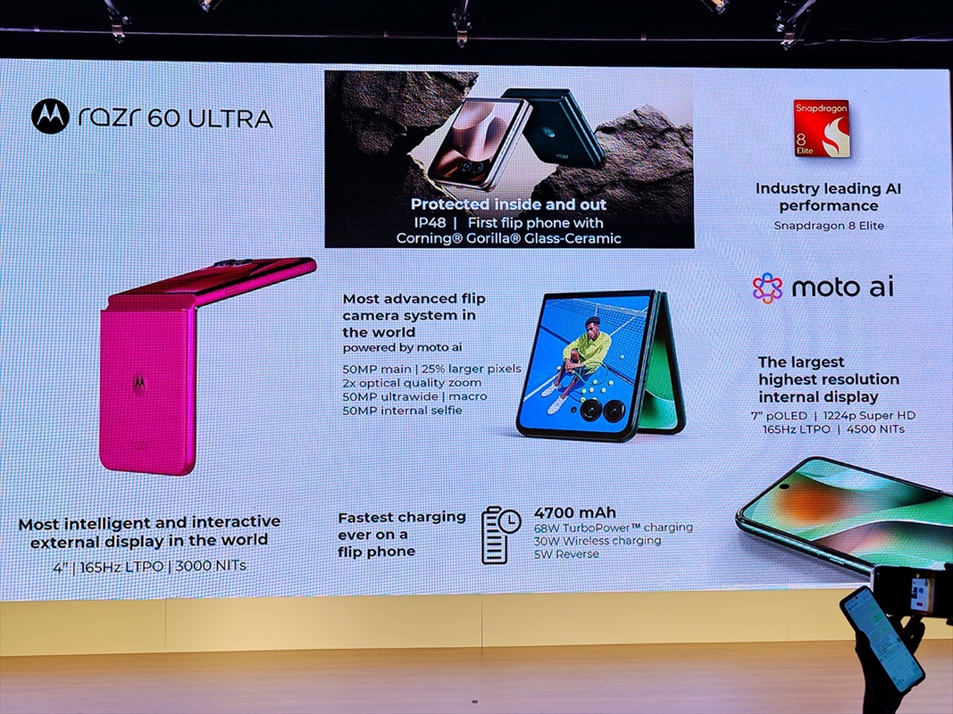 モトローラは24日、アメリカ・ニューヨークでスマートフォン新製品「razr 60」と「razr 60 Ultra」の2機種を発表した。どちらも縦型の折りたたみモデルで、razr 60 UltraはモトローラのAI機能「moto ai」を利用できる専用ボタンも搭載する。なお、現時点での発売時期と日本への投入は未定だ。