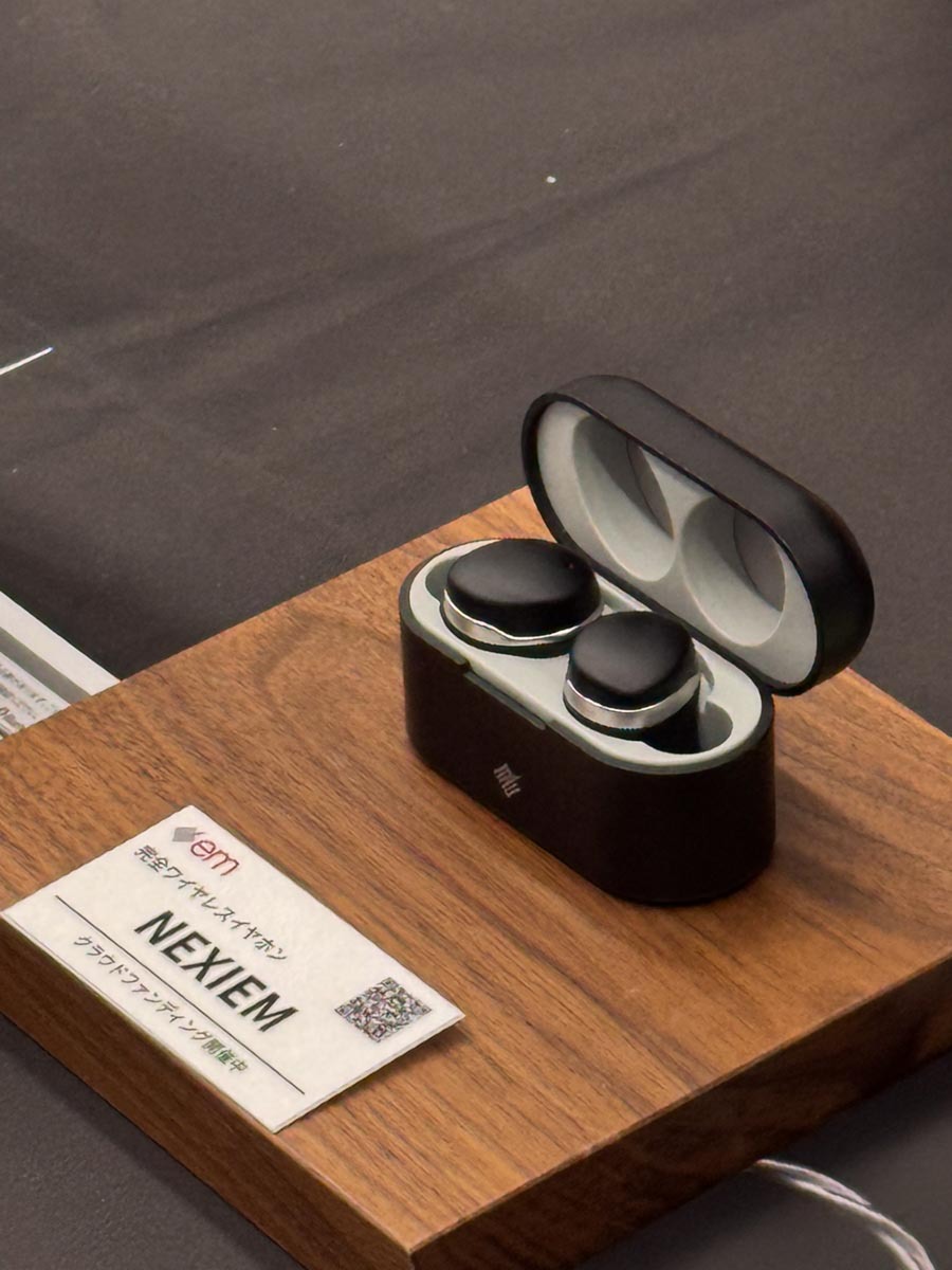 エミライは輸入代理店として様々なオーディオブランドの製品を取り扱っているが、オリジナルブランドの完全ワイヤレスイヤホン「NEXIEM」を開発し、GREEN FUNDINGでクラウドファンディングを実施中だ。