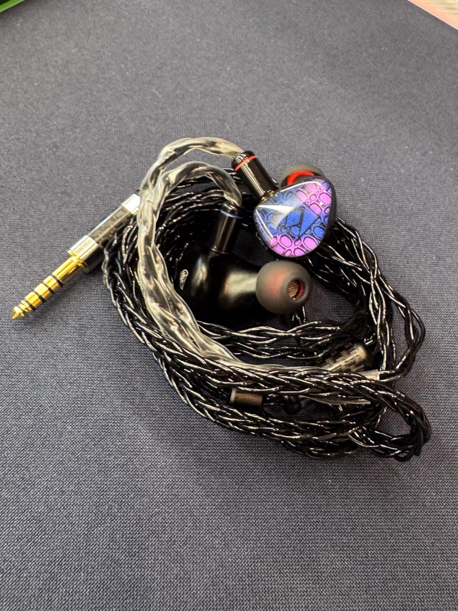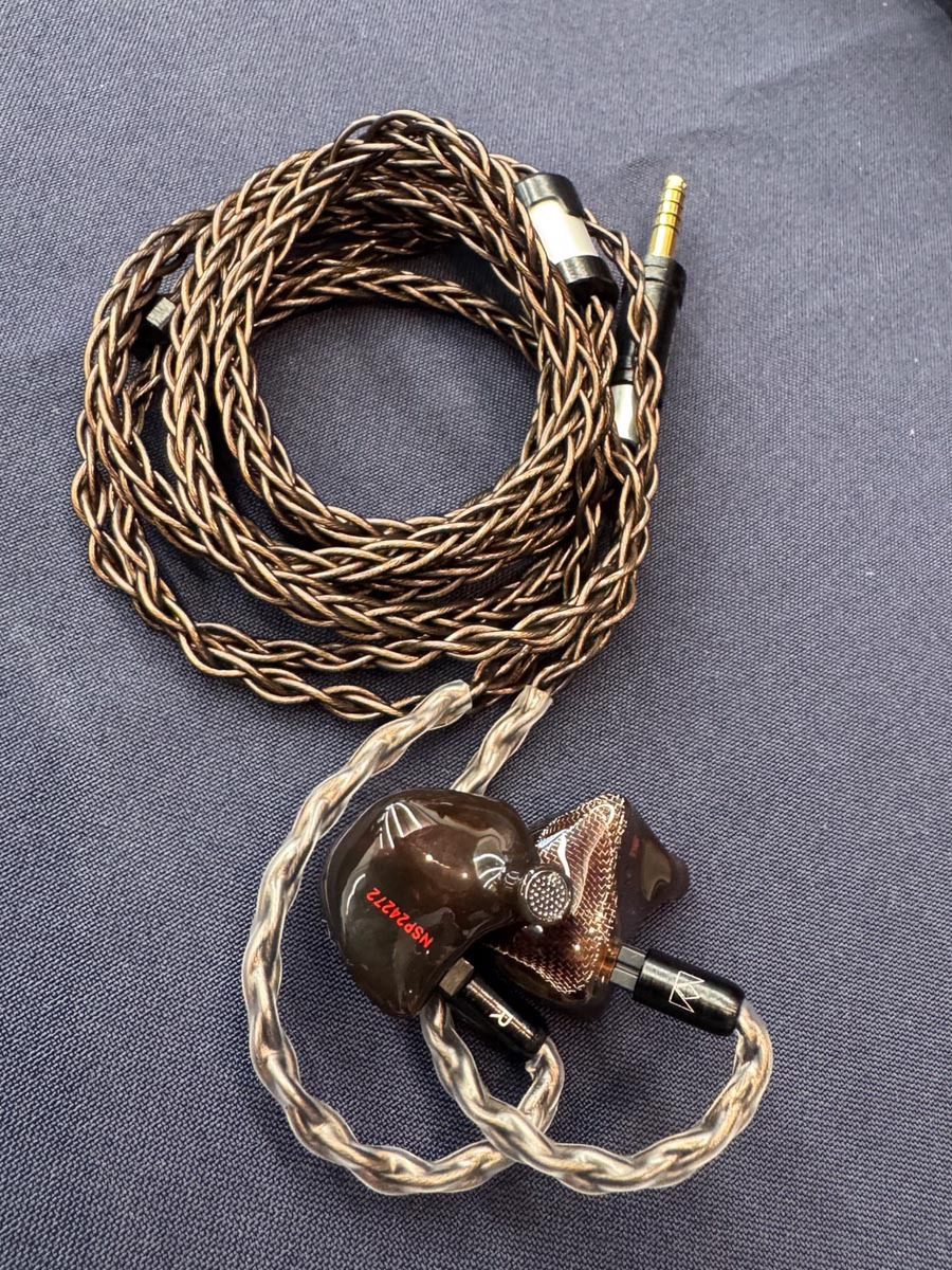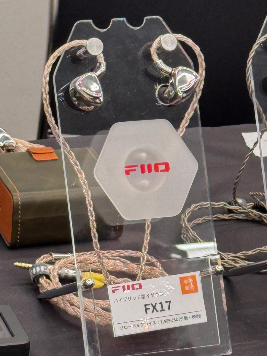毎回多くの新製品が展示されるFIIOだが、イヤホンの目玉は参考展示されていた「FX17」。10mmのリチウムマグネシウム合金ダイナミックドライバー、4基のKnowlesカスタム中高域BAドライバー、8基のZSOUND静電ドライバーを搭載した5ウェイ・マルチドライバー構成。チタン合金筐体も高級感がある。8Hz〜40kHzの高帯域再生に対応。海外では1499ドルとのこと。プラグは先の交換が可能で、3.5mm、4.4mm、Type-Cが標準で付属する。海外価格は1499ドル。