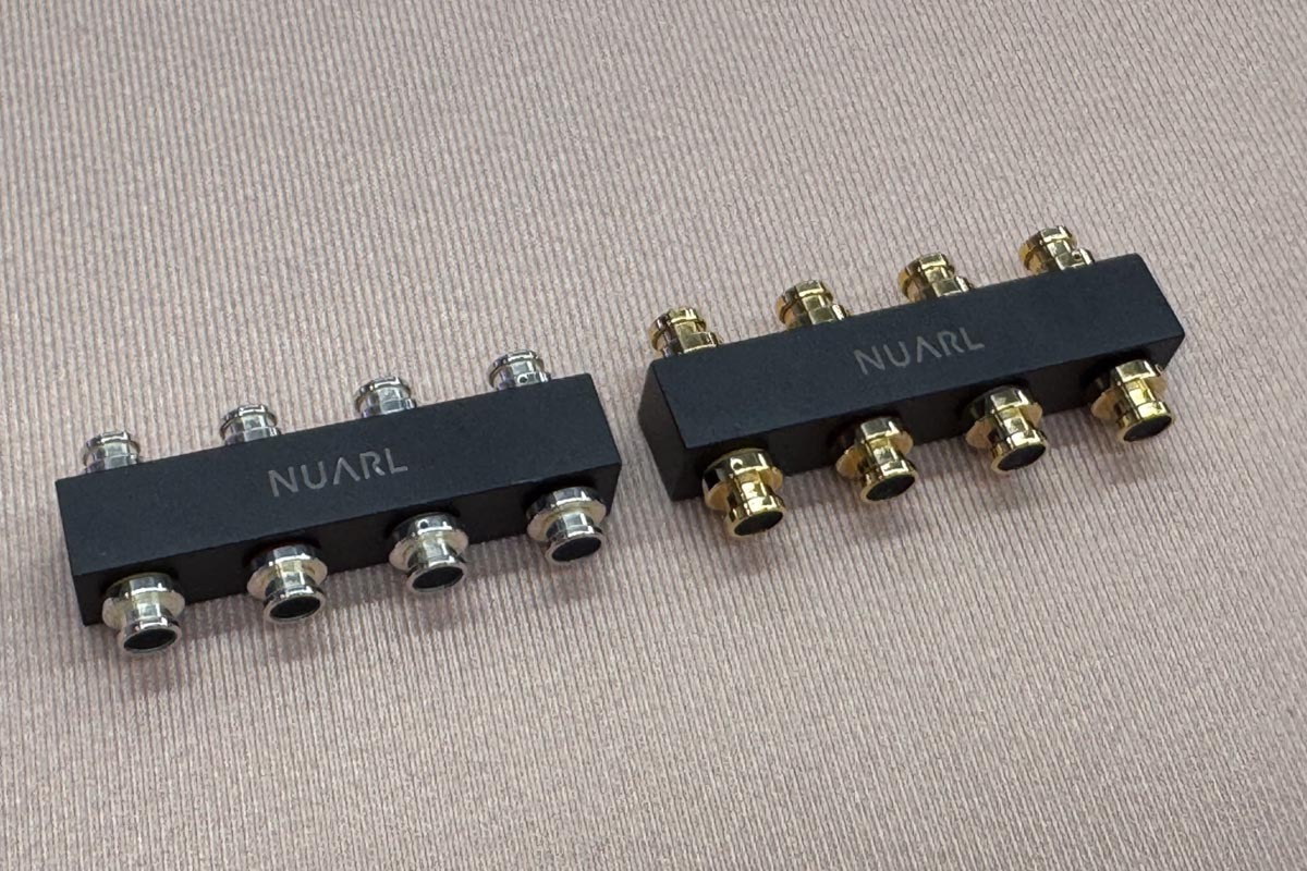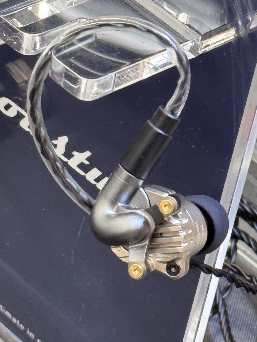 Acoustuneブランドの「HSX1001 Jin -迅-」用の音響チャンバー「C:03」も初公開! 「改良型第3世代ミリンクスドライバー」と洋白(ジャーマンシルバー)製の音響チャンバーを採用している。Jinは完全ワイヤレスイヤホンだが、「M:02」と組み合わせることで有線接続で利用できる。
