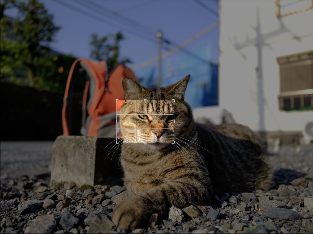 広角な単焦点レンズだけど、なにせ超高画質の1億画素であるから、そこから真ん中へんをちょろっと切り出しただけで1000万画素くらい余裕で残るわけで、実際、カメラの機能としてもクロップズーム(デジタルテレコン)やアスペクト比の変更なんかを駆使するようになっている。遠くに小さく写ってる猫をガンガンガンとズームアップしていくとディテールがどんどん見えてくる的な楽しみもあるのだ。