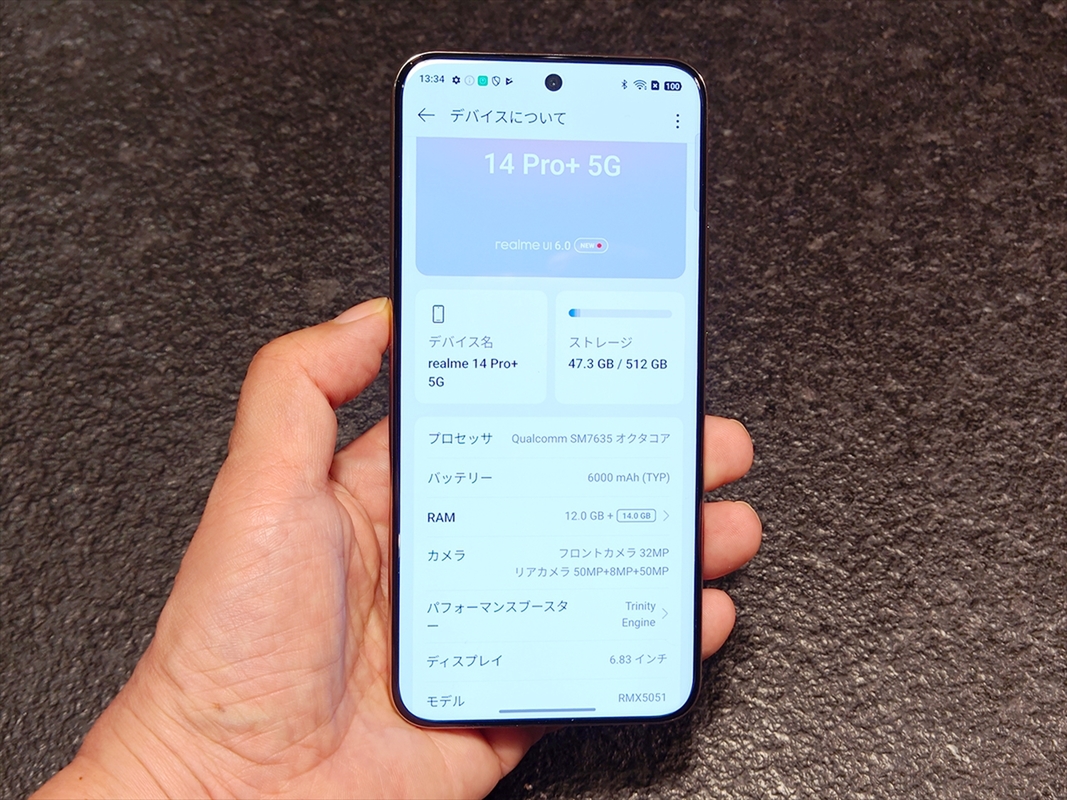 realme 14 Pro+ 5Gは、SoCにSnapdragon 7s Gen 3を搭載するミドルハイモデル。主に新興国で販売され、インドではメモリー8GB、ストレージ128GBの構成で2万9999ルピー、約5万2000円で販売されている。ディスプレーは6.83型で解像度は2800×1272ドット、リフレッシュレートは120Hz、輝度は1500ニトとなっている。