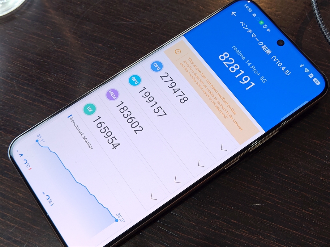 AnTuTu(10.4.5)でベンチマークを測定したところスコアは828191をマークした。ちなみに同じチップセットを搭載するスマートフォンはNothingの「Nothing Phone (3a)」などがある。