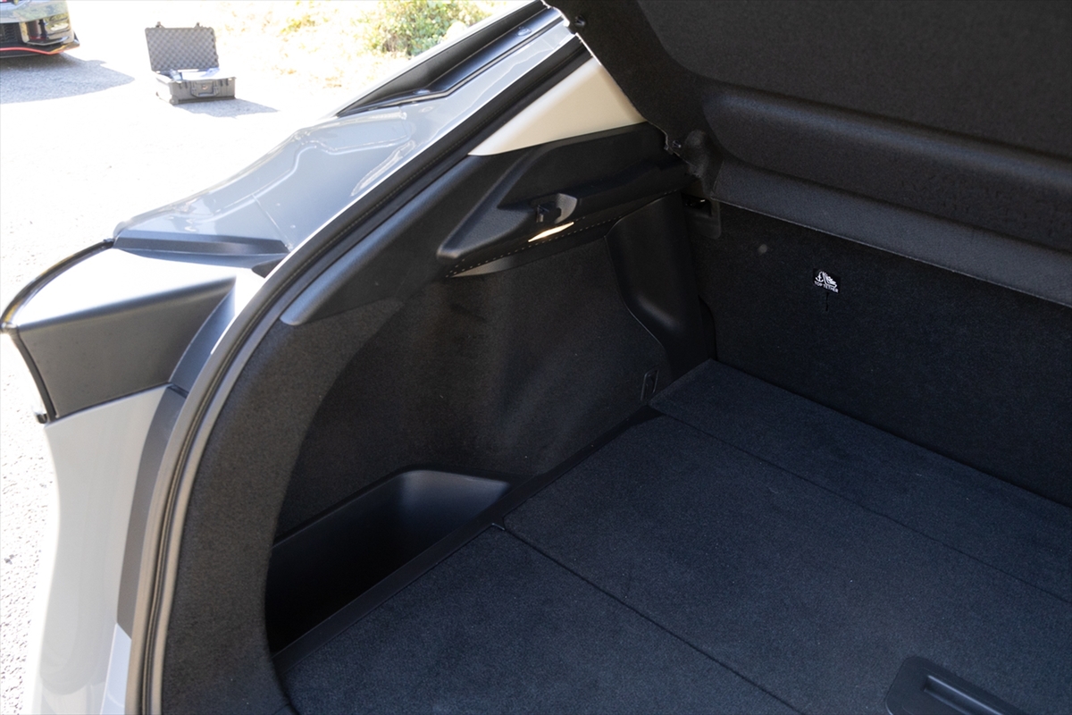 ちなみに荷室も広く実用的。他のEV車で見かけるAC100Vアウトレットがないのは残念だけれど、バックドア開口部と床面がフラットなので荷物が入れやすいし、二重床になっているので、洗車用品などを置くのに便利そうです。