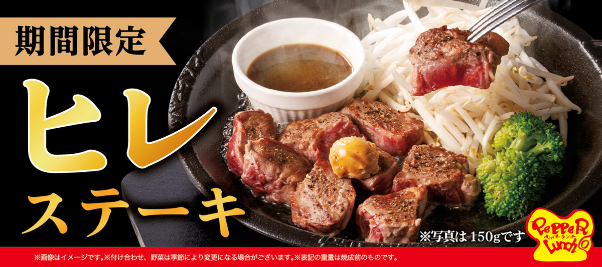 ペッパーランチは、期間限定メニュー「ヒレステーキ」を5月7日から7月15日まで販売します。