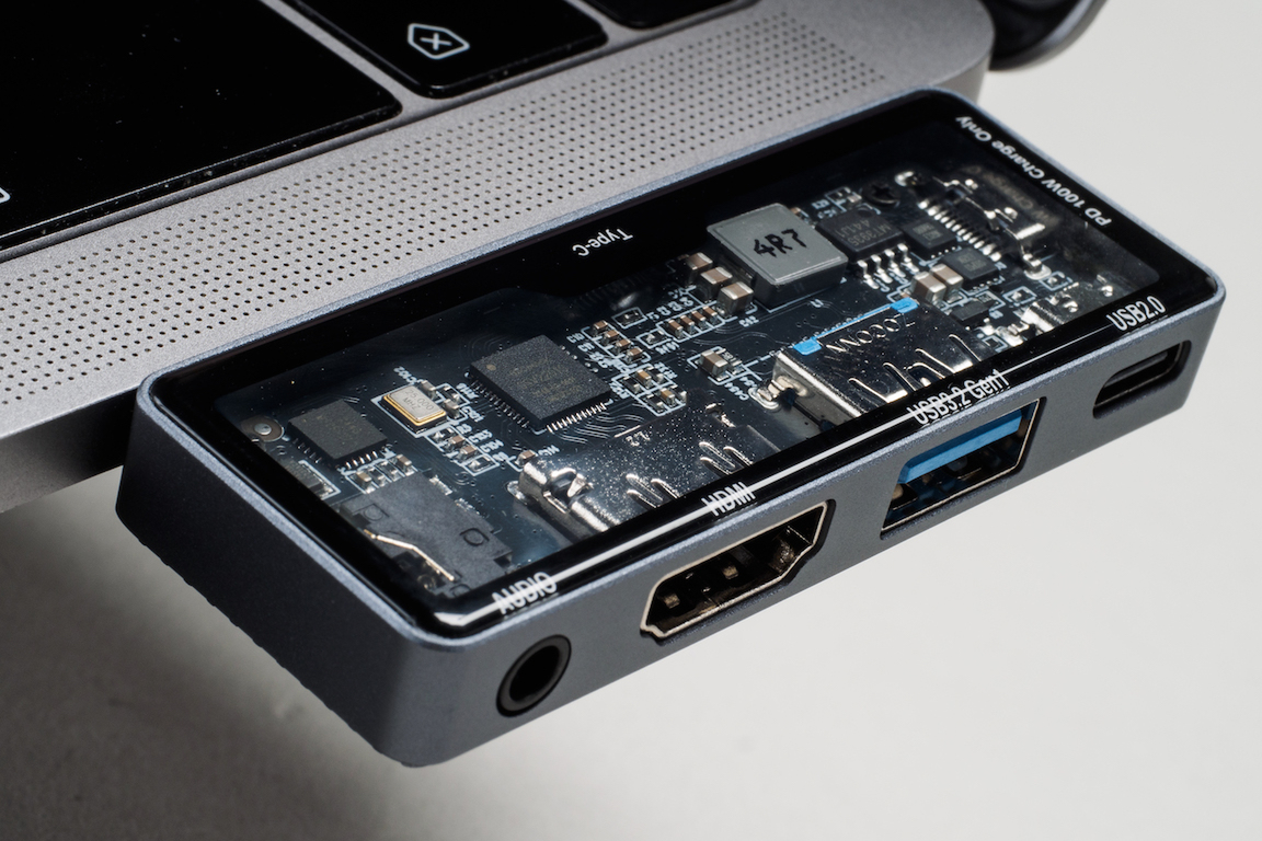 そそるスケルトン仕様で変換先も豊富、見た目からグッとくるUSB-C拡張ハブ