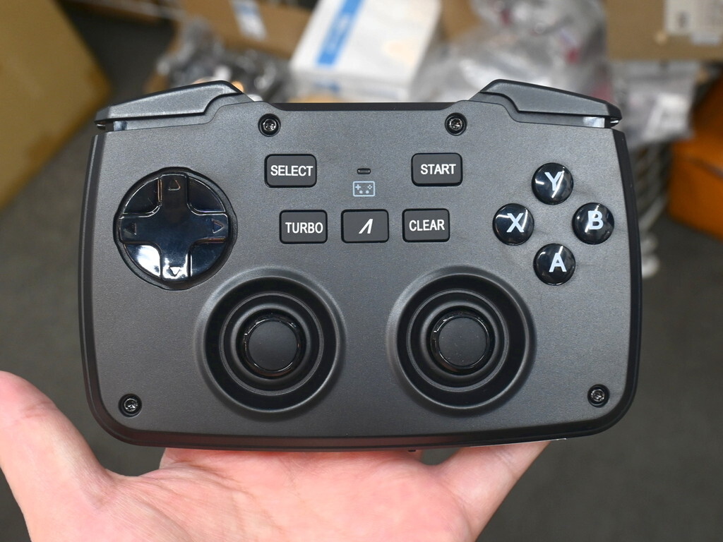 ゲーム操作ができるコントローラーと、テキスト入力が可能なキーボードが一体になった珍しいニコイチデバイス。コントローラーには2個のアナログスティックや連射可能なターボ入力対応のXYABボタン、LRボタン、さらに振動機能を備えている。
