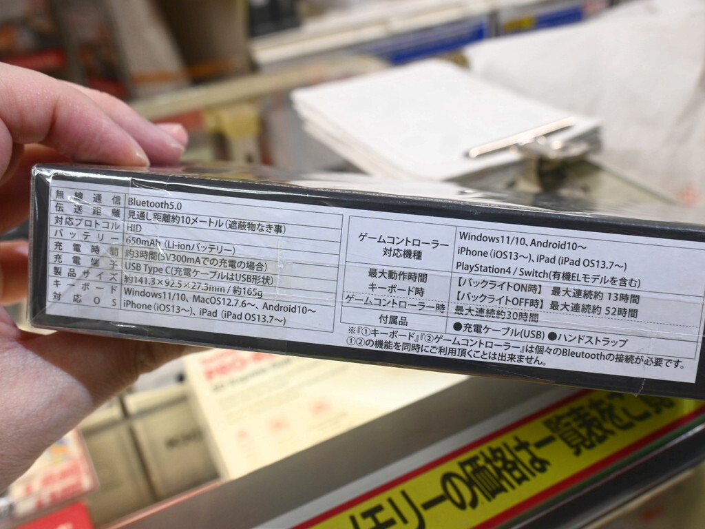 接続インターフェースはBluetooth 5.0で、動作時間はコントローラーが最大約30時間、キーボードが最大約52時間(バックライトOFF時)とされる。本体サイズは幅141.3×長さ92.5×高さ27.5mm、重さ約165gだ。
