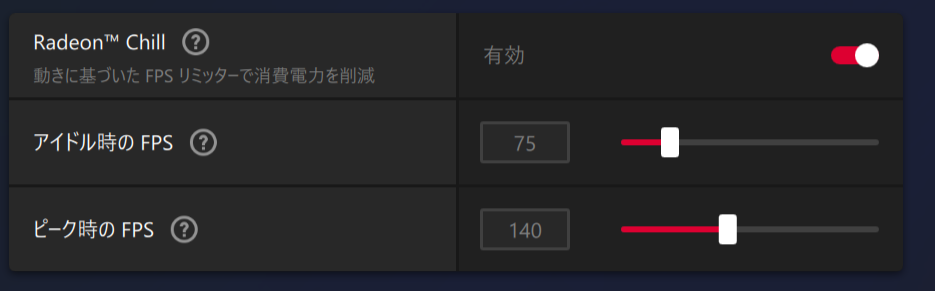 Radeon Chillはフレームレートの上限と下限を決めることで無駄のない動作をすることを目指す。この範囲に収まるようにGPUパワーを調整するわけだ。フレームレートの下限に到達しない状況ならばGPUが全力で動くため、一律のパワーカットではないという点に注目したい。このフレームレート過不足の判定はAFMF 2.1で生成されたフレームも見てくれるため、Radeon ChillとAFMF 2.1の併用がオススメだ。また、この機能はRadeon Anti-Lagとは同時使用できない。
