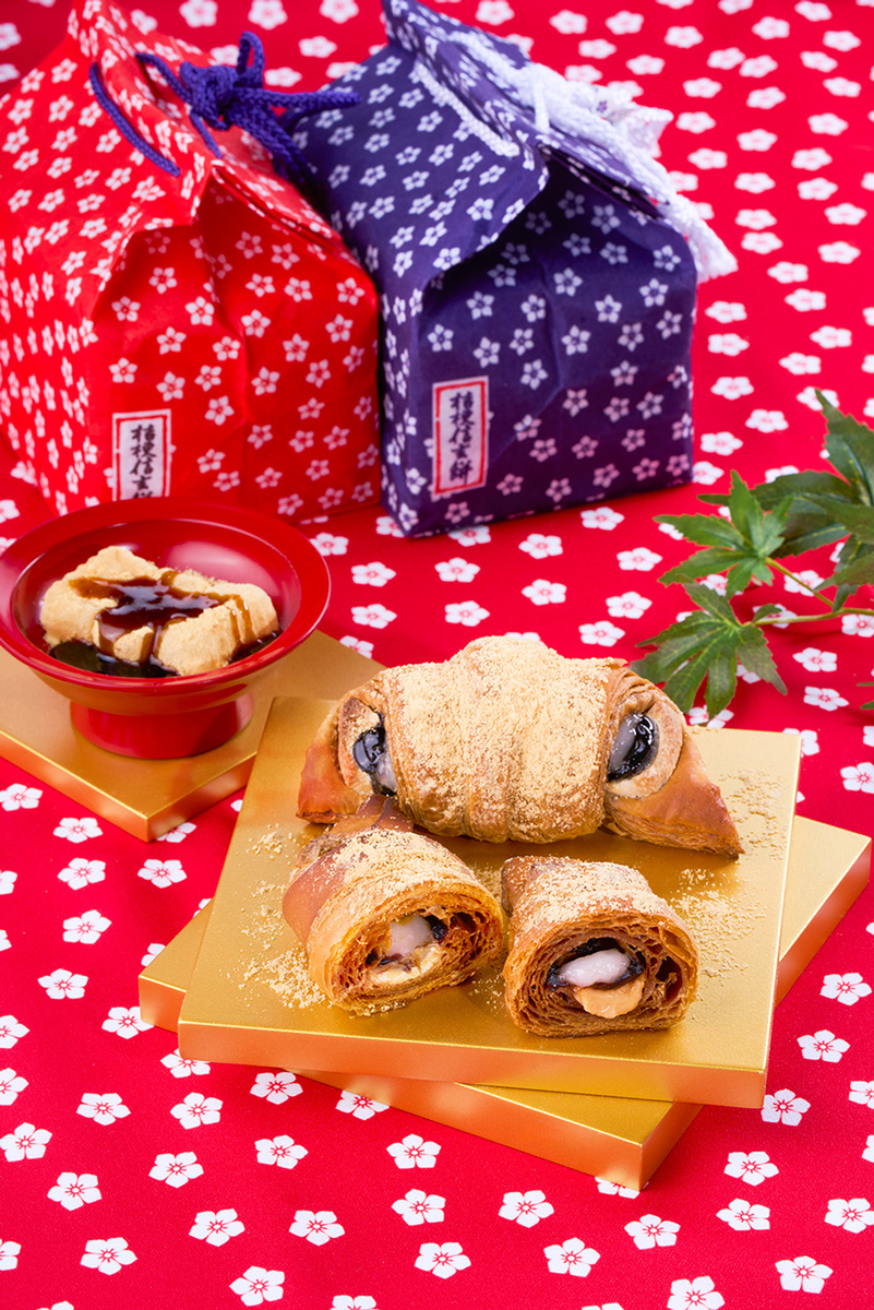 「プレミアムチョコクロ 桔梗信玄餅」は、黒糖を練り込んだクロワッサン生地に、国産大豆を使ったきな粉ホワイトチョコレート、もちもちの求肥フィリング、そして濃厚な黒みつクリームを組み合わせた一品です。