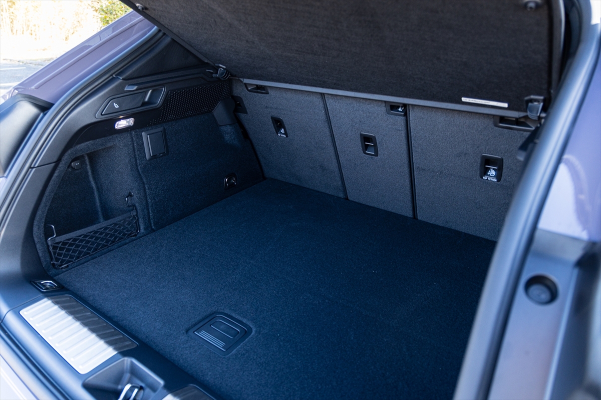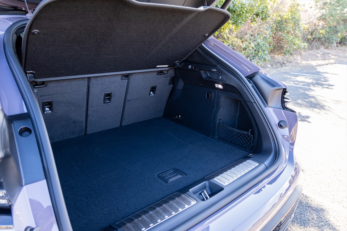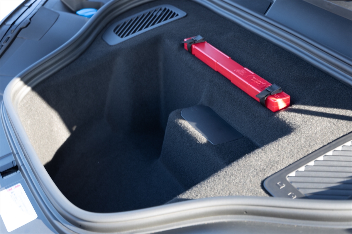 ラゲッジスペースはリアだけでなくフロントにも用意。試乗車にはオプションのアクティブエアサスペンション(39万8000円)を装備しているので、リアだけ車高を下げることができた。これで荷物の積み込みが少しラクになる。