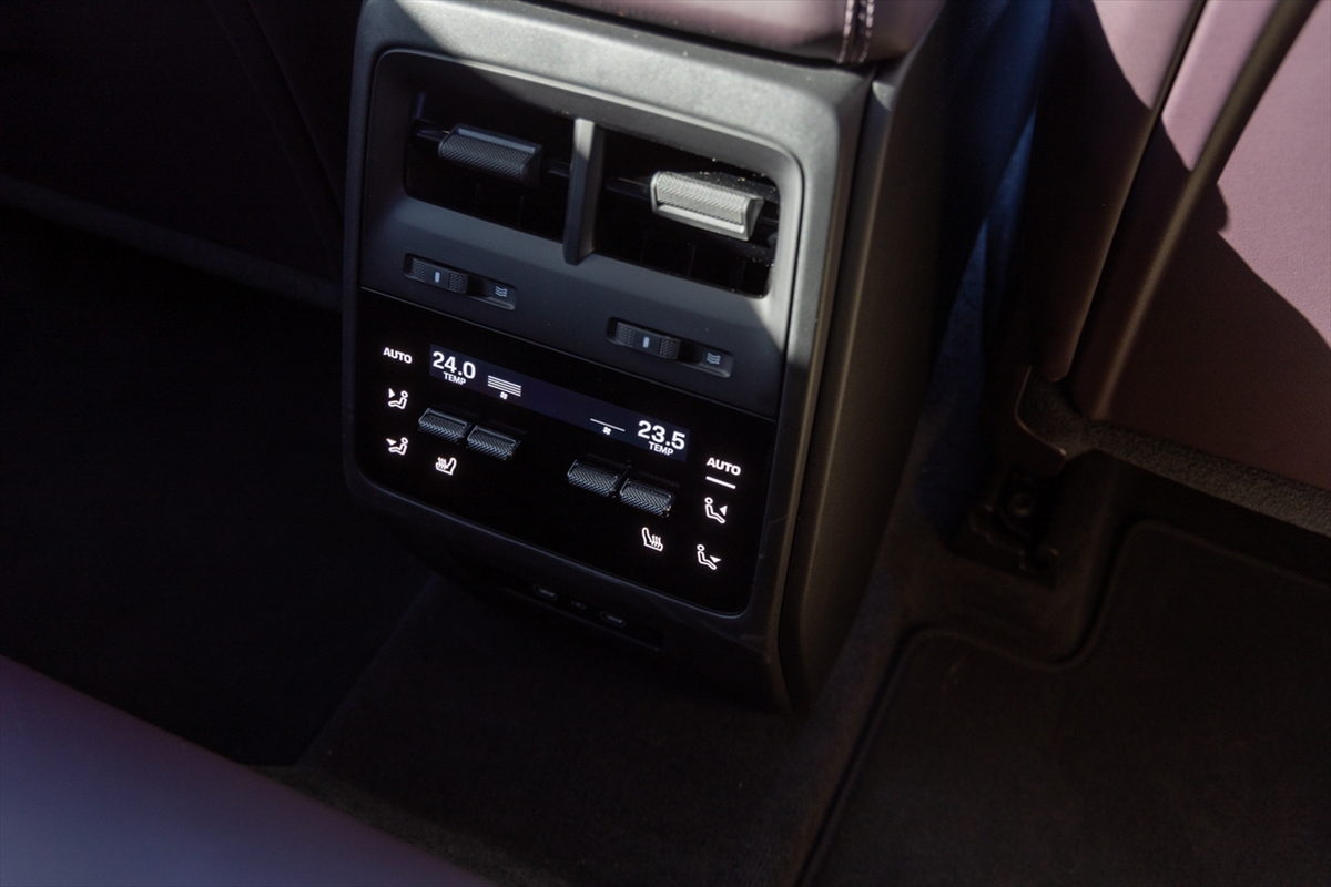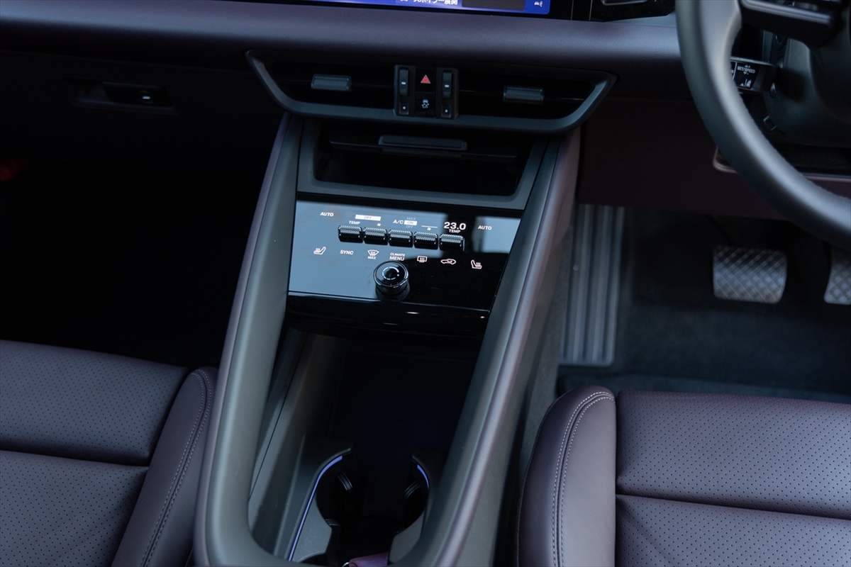 後席は広々。センタートンネルがないので足元はかなり広い。アメニティーはUSB Type-C充電端子のほか、シートヒーター、エアコン送風口も用意されている。