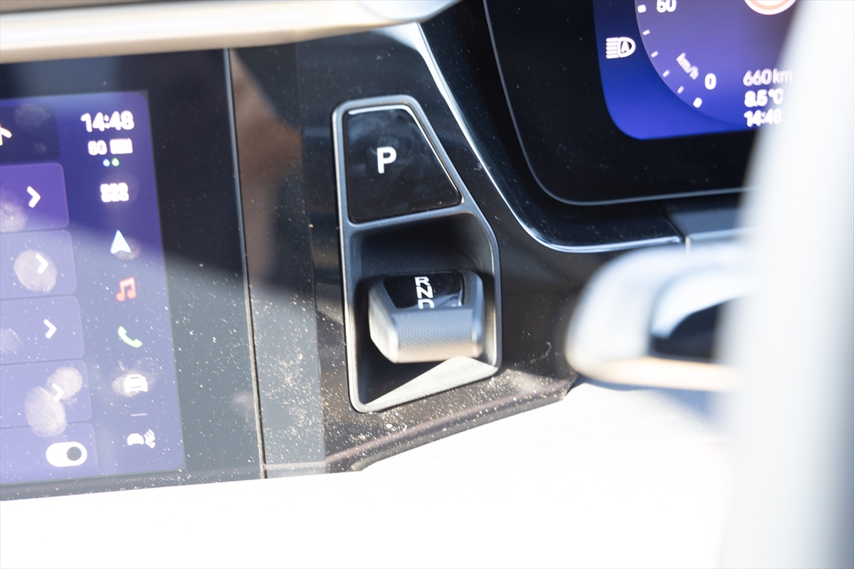 センターコンソールにシフトセレクターがなくなり、タイカンと同じくハンドル左側に配置。