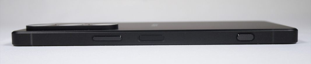 側面のインターフェースもXperia 1 VIを踏襲しており、右側面に音量キーと指紋センサーを備えた電源キー、そしてXperia 1シリーズの象徴となっているカメラボタンも引き続き用意されている。