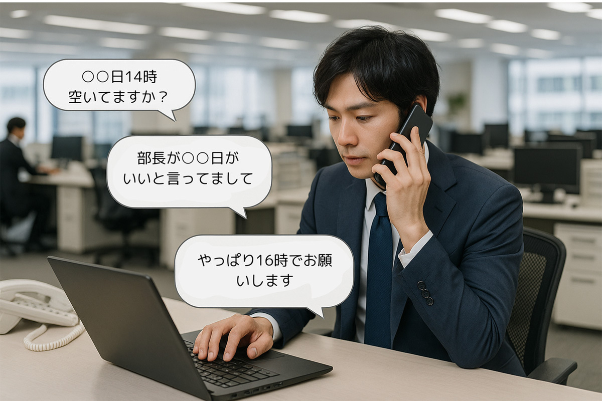 仕事を進める中、新人でも上司や先輩と打ち合わせを設定する機会は多い。しかし、「この日程で大丈夫ですか?」「他の日がいいですか?」「ではこの日は?」と、何度もやり取りをするのは手間がかかってしまう。忙しい上司だと、返信が遅れたり、予定が二転三転することも珍しくない。