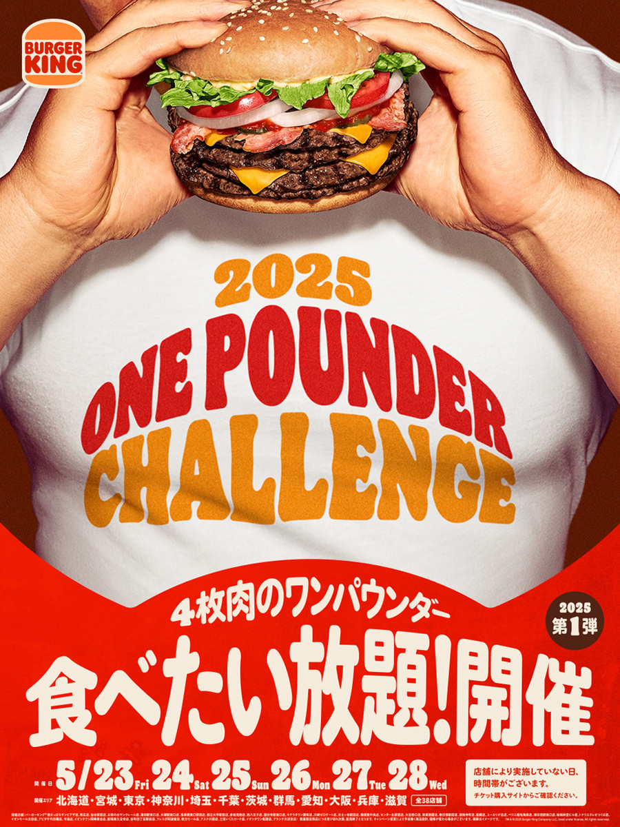 バーガーキングが、毎回チケットが即完売となる人気イベント「ワンパウンダーチャレンジ2025」を、過去最多の全国38店舗にて開催します。