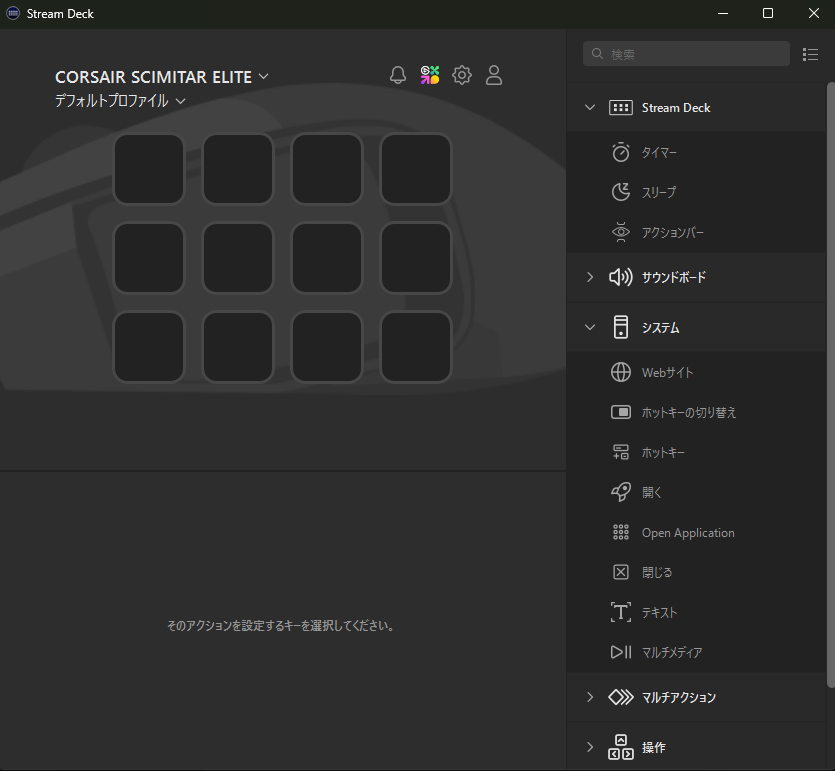 そして、SCIMITAR ELITE WIRELESS SEではStream Deckの機能も統合されています。Stream Deckでは、ワンボタンでさまざまな操作が可能になっていましたが、これをSCIMITAR ELITE WIRELESS SEで使うことが可能になっています。