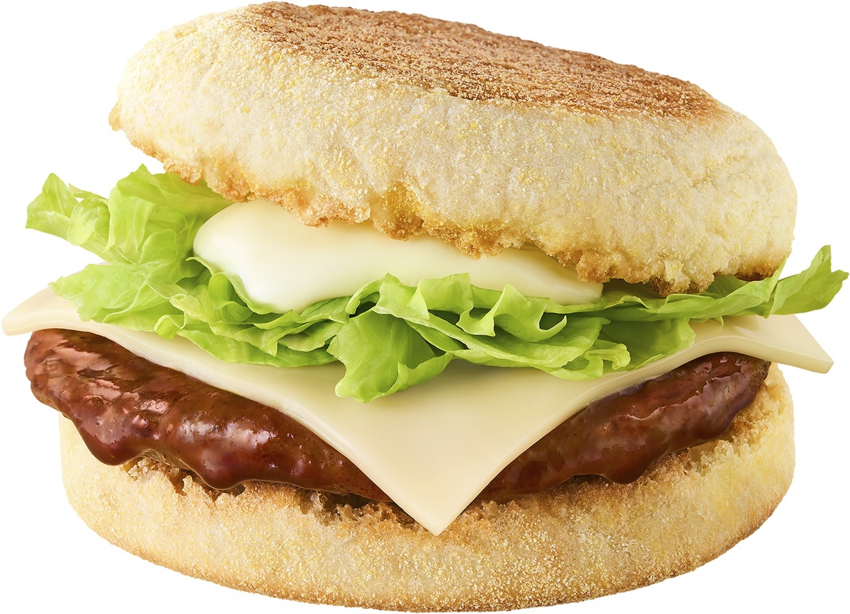 ジューシー&スパイシーなソーセージパティに甘辛いてりやきソースをからめ、チェダーチーズ、クリームチーズ、マスカルポーネ、カマンベールチーズの4種類をブレンドしたクリーミーなチーズソース、コクのあるホワイトチェダーチーズのスライス、シャキシャキのレタスをイングリッシュマフィンでサンドした、チーズの味わいを朝から楽しめます。