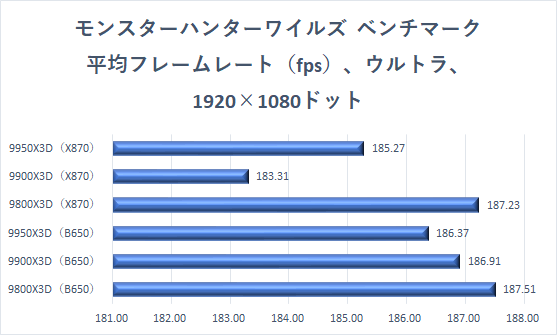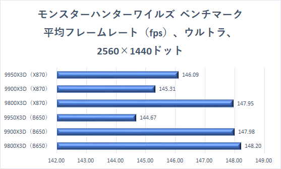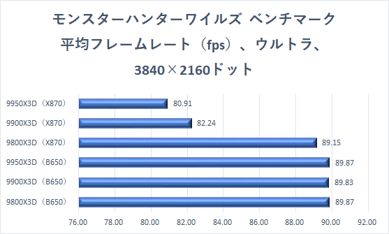 「ファイナルファンタジーXIV: 黄金のレガシー ベンチマーク」と同じく、文句なしの結果だ。「B650M Pro X3D WiFi」+Ryzen 7 9800X3D+Radeon RX 9070 XTで組めば、コストを抑えながら、モンハンワイルを快適にプレイできるPCの出来上がりだ。