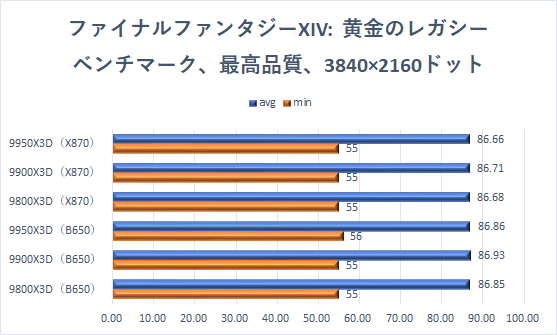 まずは定番ベンチマーク「ファイナルファンタジーXIV: 黄金のレガシー ベンチマーク」で確認だ。ベンチマークは画質を「最高画質」に設定し、解像度3840×2160、2560×1440、1920×1080ドットで実行した。