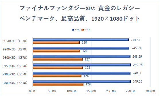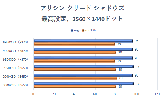 4Kの3840×2160ドットではX870とB650に差はでなかったが、2560×1440ドット、1920×1080ドットではわずかだが、B650のほうがフレームレートを伸ばしている。ゲームプレイ中に体感できるほどの差ではないが、「B650M Pro X3D WiFi」は、コストを抑えながら同等のパフォーマンスを発揮してくれるわけだ。