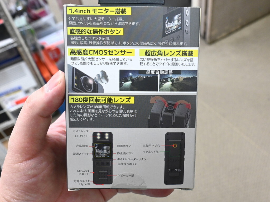 そのほか、本体には録画ファイルの確認に便利な1.4型サイズの小型ディスプレーを搭載。録画メディア用に32GBのmicroSDHCカードも付属する。また、ボイスレコーダーとしても使用可能で、音声だけを保存することもできる。