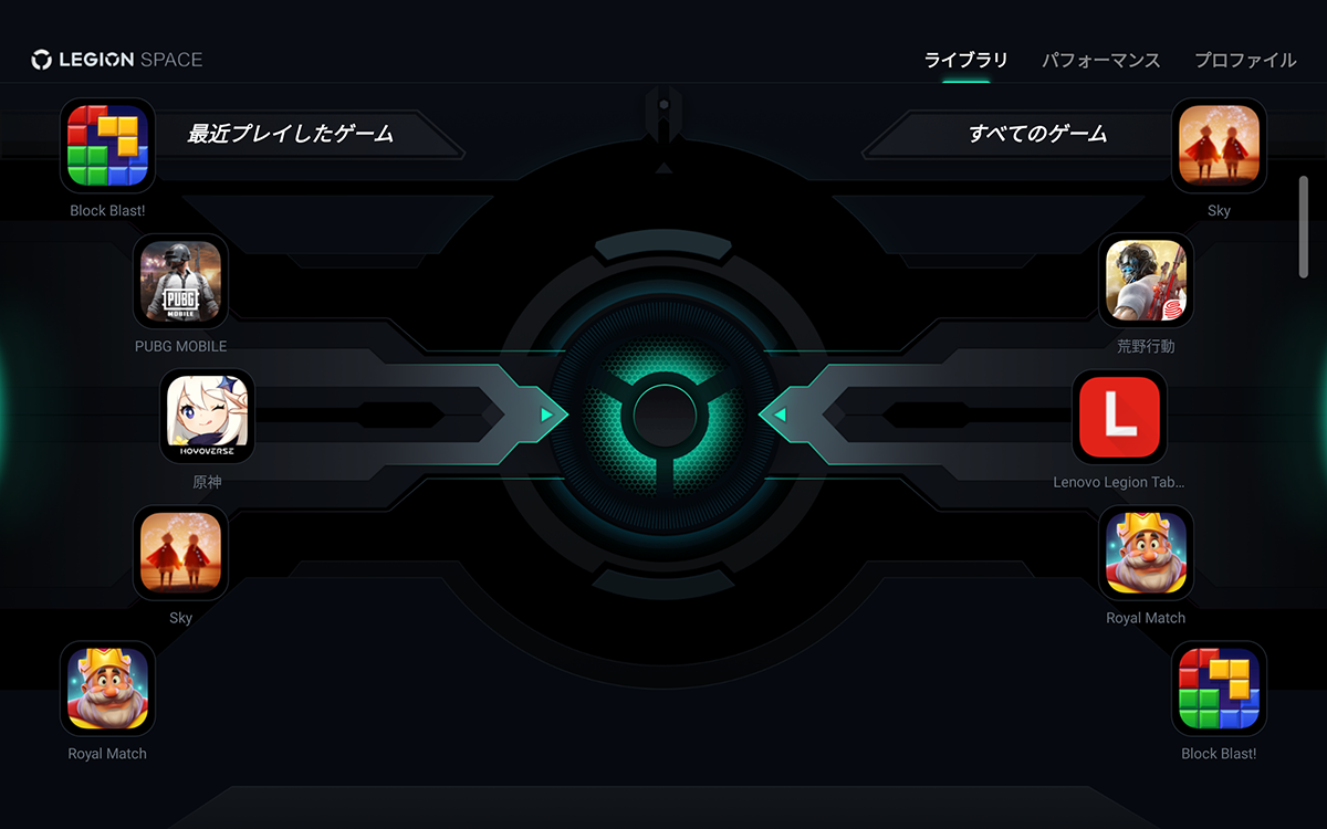 さらに、快適なゲームプレイを手助けするアプリが標準搭載されているのも見逃せないポイント。例えば、ゲームハブの役割を果たす「Legion Space」のようなアプリを使えば、お気に入りのゲームへすぐにアクセスが可能。いつでもどこでも遊びたいゲームをすぐに起動できる。
