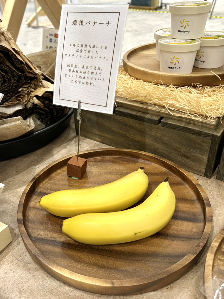 この越後バナーナがTOKYO GX ACTION CHANGINGに出展している理由は、廃棄物を焼却する際に出てくる排熱を利用したハウスでバナナを栽培しているからだそう。安定して熱エネルギーを確保できることから、雪国でのバナナ栽培を実現し、年間を通してバナナを生産・出荷することが可能なのだとか。