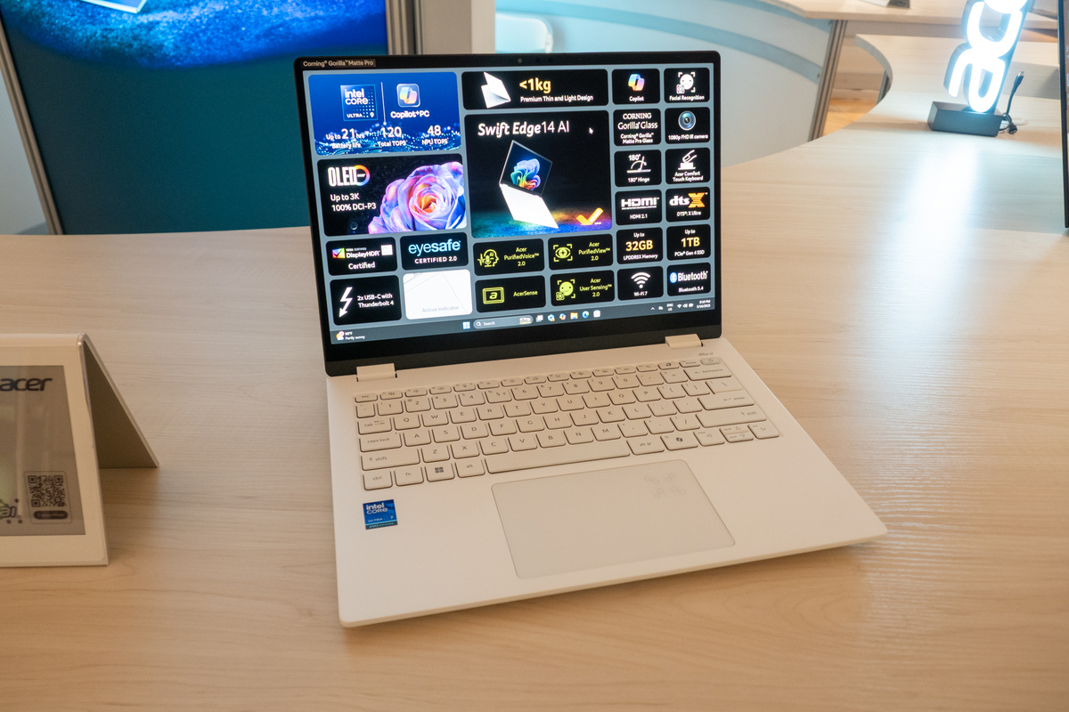 プレミアム薄型軽量ノートパソコン「Swift Edge 14 AI」は、最新のインテルCore Ultra 9プロセッサーを搭載し、Copilot+ PCとして位置づけられている。約0.99kgのマグネシウム・アルミニウム合金製筐体を採用し、14インチ3K OLEDディスプレーはCorning Gorilla Matte Pro表面処理により反射を軽減。最大32GB LPDDR5Xメモリー、最大1TB PCIe Gen 4ストレージを搭載し、最大21時間のバッテリー駆動が可能だ。Thunderbolt 4ポートを2基含む複数の接続ポートを備える。