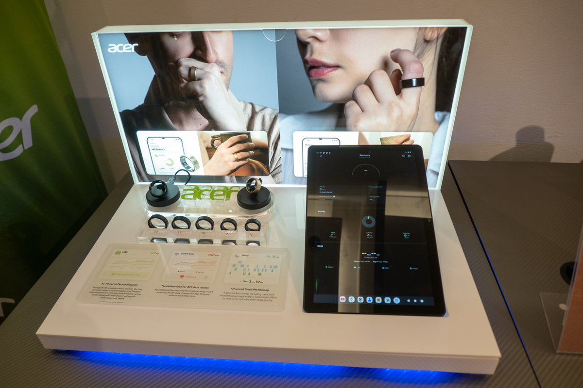 「Acer FreeSense Ring」は軽量チタン製のスマートリングで、24時間体制の生体認証データ追跡とAIによるウェルネス分析が可能なデバイス。心拍数、心拍変動、血中酸素濃度、睡眠状態などのバイタルデータを収集し、専用モバイルアプリで分析し、個人に合わせた健康管理情報や提案を提供する。追加サブスクリプションなしで全データにアクセス可能で、Acerデバイス専用ではなくAndroid、iOSと幅広いデバイスに対応しているのも注目のポイント。