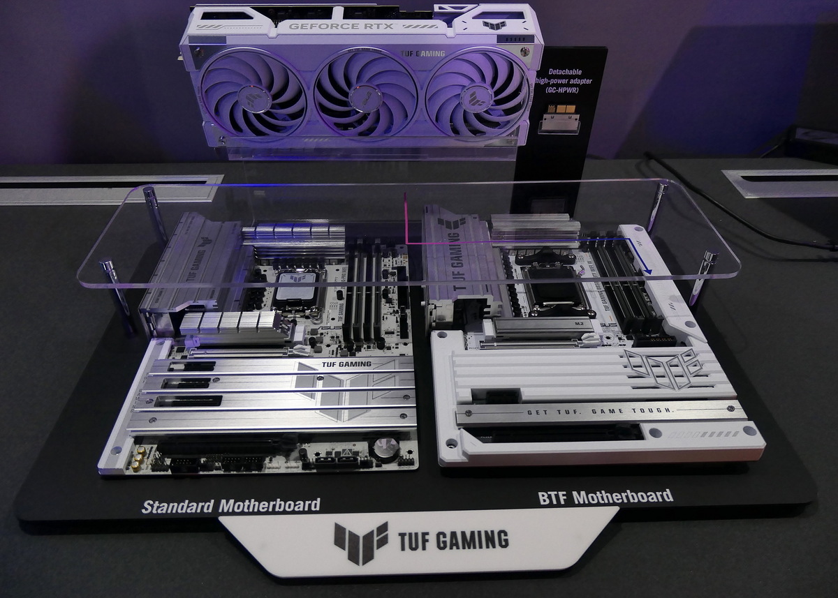 続いては自作パーツ系で、まずはASUSが得意とする自作PCの裏配線システムBTFを紹介。これは、「Back-To-the-Future」の略で、品ぞろえも豊富だ。