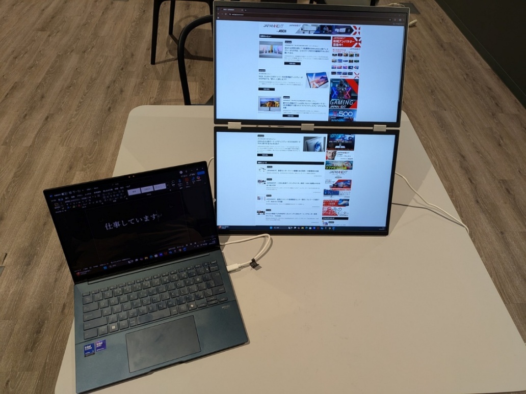試しに、筆者のノートPCをJN-DMD-IPS185Fに接続してみた。ノートPCはHDMIかUSB Type-Cで映像出力できるモデルだが、今回は付属のUSB Type-Cケーブルを使用している。