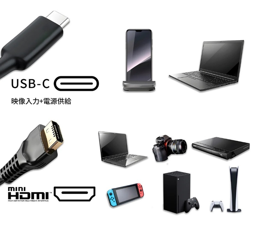 本機を試用してみて、”初心者でも簡単に扱える設計”に好感を抱いた。接続方法はとても簡単で、USB Type-CやMini HDMIの入力端子にケーブルを1本挿すだけ。この”〇〇するだけ”というシンプルさがとにかくすばらしい。