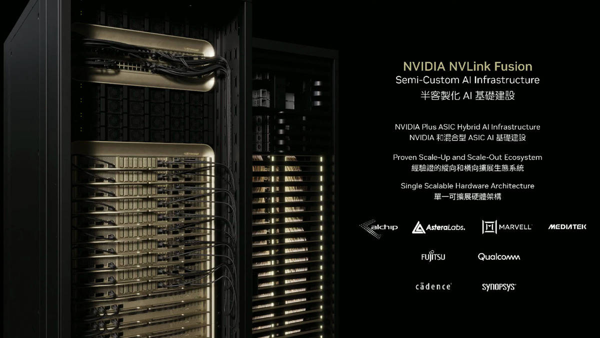 NVLink Fusionエコシステムのパートナーとして、ASICおよび半導体カスタムプロバイダーのMediaTek、Marvell、Alchip Technologies、Astera Labsと協業。ハイパースケーラーやCPUベンダーがカスタムシステムを構築するのを支援する。また、富士通とQualcommはNVLinkを搭載したCPUを開発し、NVIDIAのエコシステムに統合する。CadenceとSynopsysは、NVLink対応の設計ツールとIPを提供し、チップ開発を支援する。