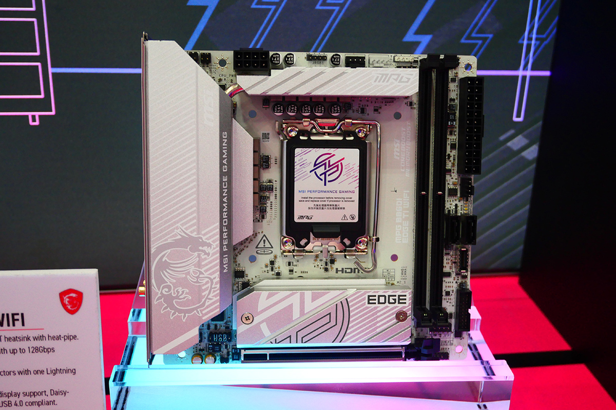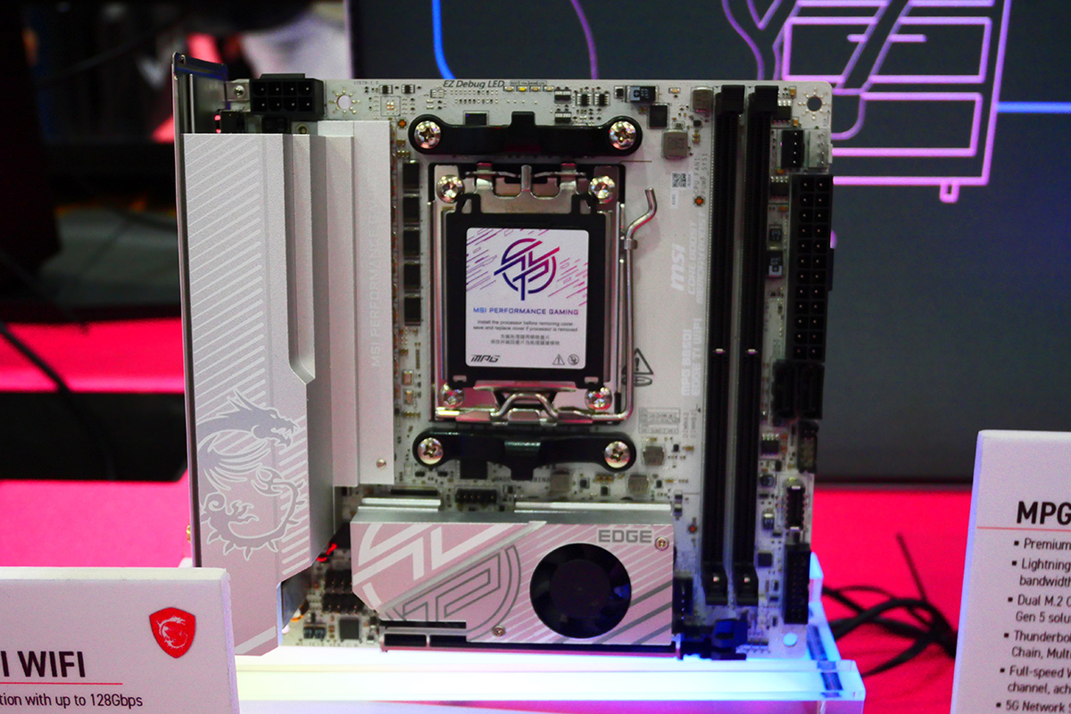 Mini ITXマザーボードとしては、X870「MPG X870I EDGE TI WIFI」、B850「MPG B850I EDGE TI WIFI」B860「MPG B860I EDGE TI WIFI」の3モデルが展示されていた。