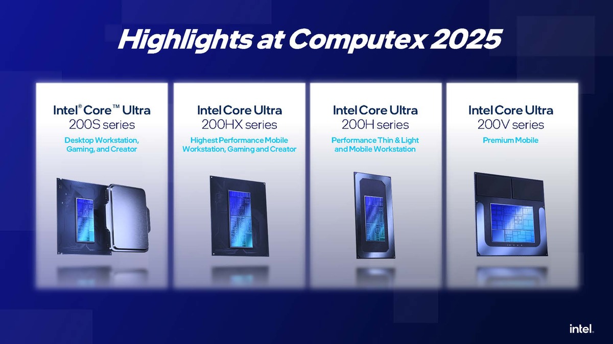 インテルはCOMPUTEX TAIPEI 2025に関連したプレス向けイベントを台北市内で開催。クライアントPC向け製品の最新ラインナップを公開し、ワークステーション、ゲーミング、プレミアムモバイルといった多様な用途に対応するCore Ultra 200シリーズプロセッサー群をあらためて詳細に紹介した。