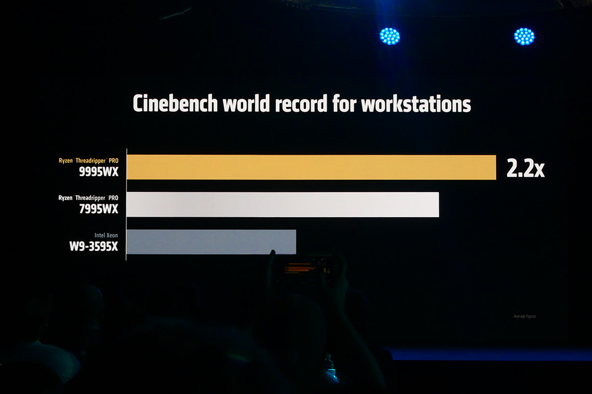 基調講演では、Ryzen Threadripper 9000 シリーズも発表された。最大96コア/192スレッドのプロセッサーで、高負荷なVFXレンダリングやAIモデルのローカルファインチューニングに最適としている。また、HEDT環境向けで最大64コアモデルも用意する。