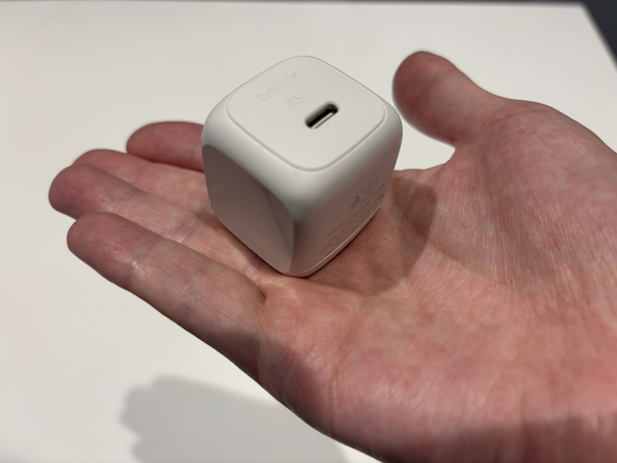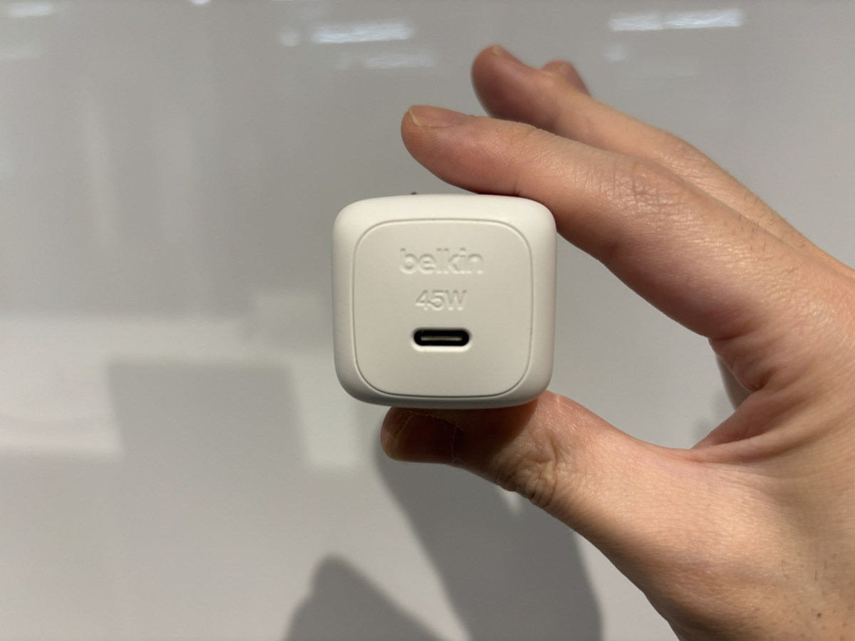 そんな課題を解決してくれるのが、Belkinの「Cubic Charger 45W」。この製品は、手のひらにすっぽり収まるほど小型でありながら、最大45Wの高出力を誇るUSB-C充電器です。