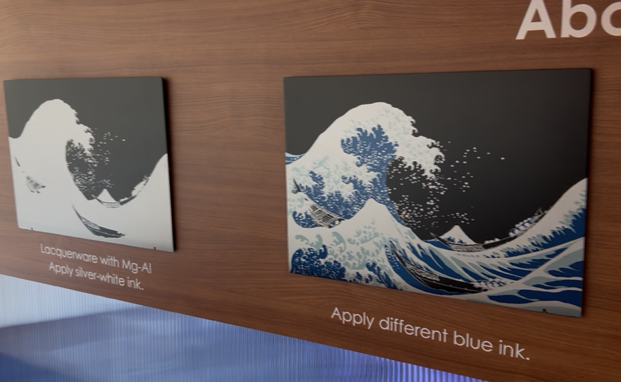 まず惹かれたのが、”岡田や漆器”とコラボレーションしたノートパソコン「Prestige 13 AI+ Ukiyo-e Edition」。400年以上の歴史を持つ山中漆器の技術を使用した天板を採用している。天板には、葛飾北斎の富嶽三十六景「神奈川沖浪裏」にインスパイアされたデザインを採用する。石川県で1枚1枚塗装されているとのことで、実際に見るとその完成度はかなり高く見える。