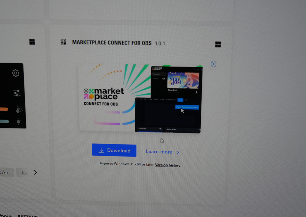 そのほか、OBS Studio用のプラグイン「Marketplace Connect for OBS」も発表。配信時によく使うトビラやシーンコレクションを無料/有料でインストールすれば自動でセットアップして使えるというもの。配信を始めたいけど、なかなかこだわるにはどうしたらいいかわからないという人にオススメのツールとなっている。また、さらにこだわるために自身で用意したシーンも、簡単に差し替えることが可能だ。