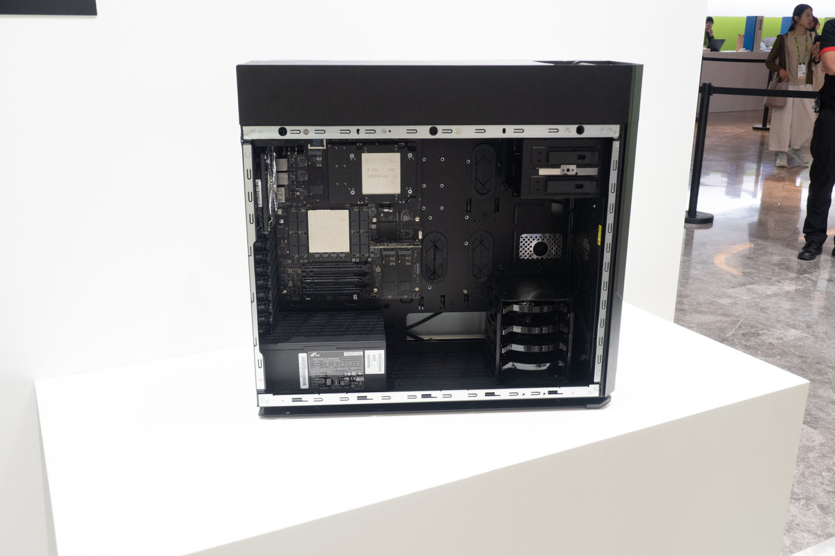 さらに強力なワークステーションとして、「DGX Station」が紹介された。ワークステーション筐体の中にGrace CPUとBlackwell Ultra GPUを搭載し、20ペタフロップスを発揮。これにより、より大規模なシステムを手元のデスクで利用できるようになる。DGX StationはNVIDIAブランドでの直接販売はなく、Supermicroなどのパートナーメーカーから提供される。