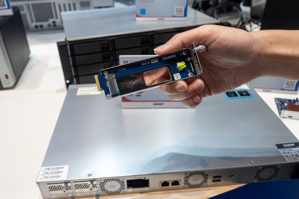 エンタープライズの入門レベル向けとしては、「TS-h765eU」や「TS-h1655XeU-RP」といったラックタイプのモデルも展示。これらはホームユーザー向けのモデルよりも高価になる。