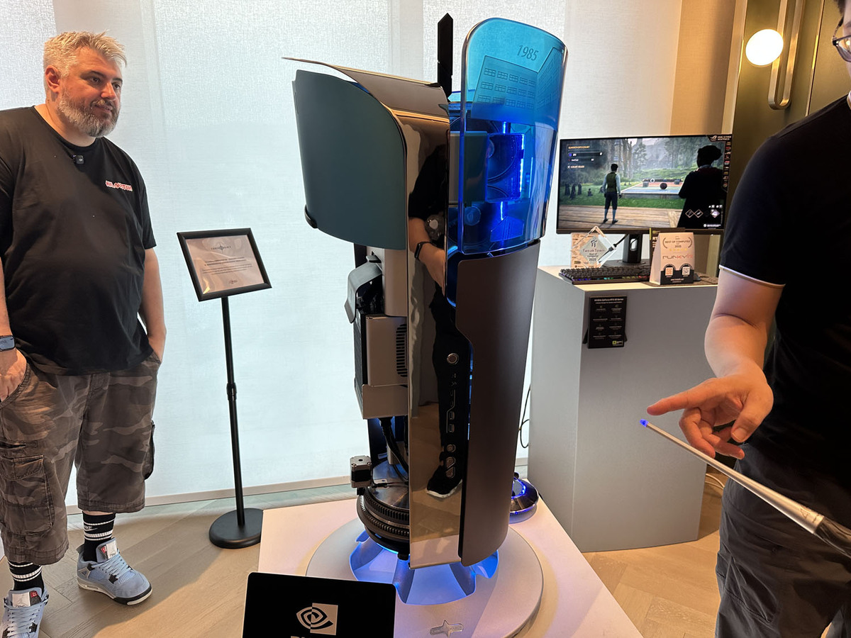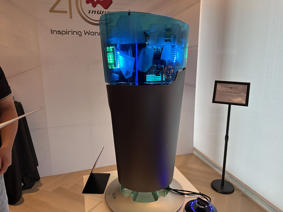 ChronoMancyは、In Winの長年にわたる進化を象徴するコンセプトで、時間の経過からインスピレーションを受けているという。それそれの節目は成長の段階を示し、蓄積された専門知識を未来のイノベーションへと発展させていく、とのことだが、あまりの大きさと可変ギミックに目を奪われてしまい、説明員の話が全然頭に入ってこない。とりあえず、数多くの受賞歴を持つIn Winだけに、トロフィーをモチーフにしているということだけは理解できた。